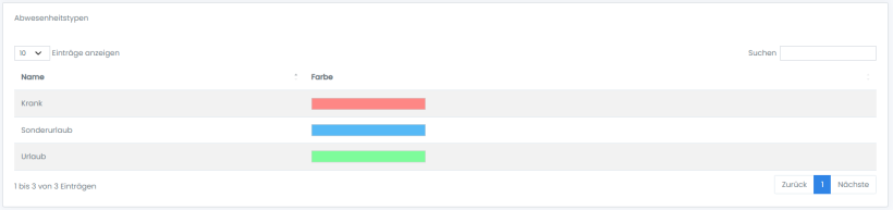 Über die Typen können Sie festlegen ob eine Abwesenheit die Urlaubstage reduziert oder sich auf die Arbeitszeit auswirkt.