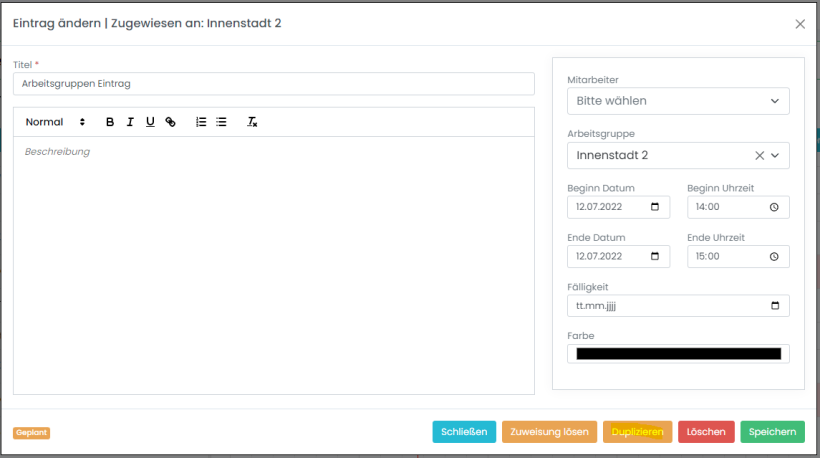 Hier haben Sie noch die Möglichkeit die Planung, in diesem Fall die Zuweisung, zu kopieren.