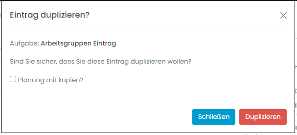 Nach dem Klick werden Sie gefragt ob Sie diesen Eintrag wirklich duplizieren möchten.