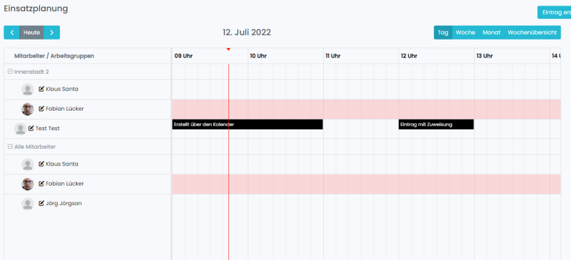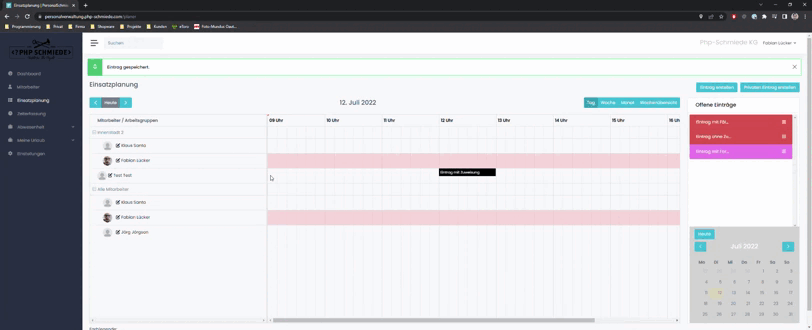 Beim erstellen eines Eintrags direkt über den Kalender, wird dieser Eintrag sofort zugewiesen und geplant.