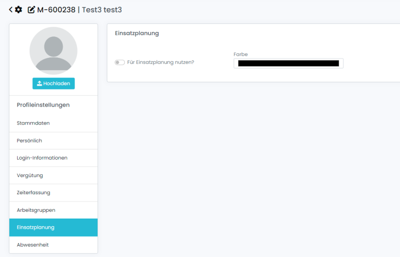 - Diese diese Einstellung nicht aktiv, wird der Mitarbeiter nicht in der Einsatzplanung angezeigt. Soll ein Mitarbeiter in der Einsatzplanung genutzt werden, ist es notwendig, dass dieser Haken gesetzt ist.