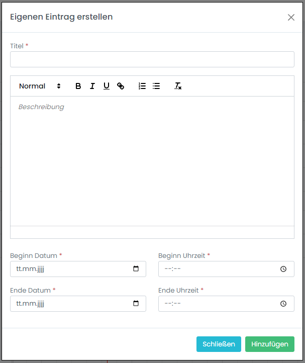 Das Formular für einen Privaten Eintrag sieht wie folgt aus: