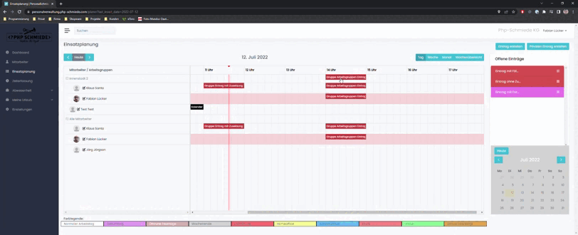 Nach kurzem Laden, wird der Eintrag dann in der Liste der Offenen Einträge angezeigt.