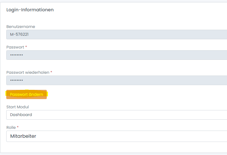 Um das Passwort eines Mitarbeiters zu ändern, klicken Sie auf "Passwort ändern".