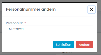 Hier können Sie jetzt die gewünschte Personalnummer eingeben. Das System prüft im Hintergrund ob diese Bereits vorhanden ist. Ist das nicht der Fall, klicken Sie auf "Ändern".